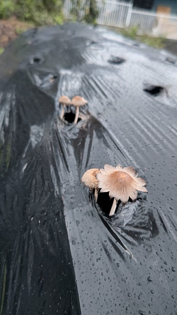 今回作った畝はなかなか調子が良いようで、もう既にキノコが発生している。