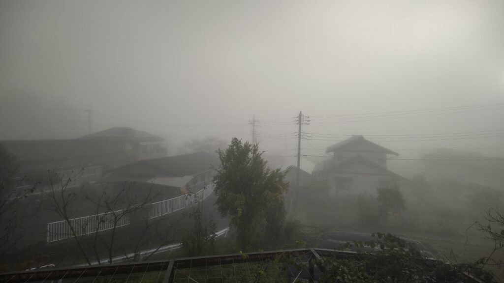 前日雨模様だった影響なのか、朝はすごい濃霧となった。