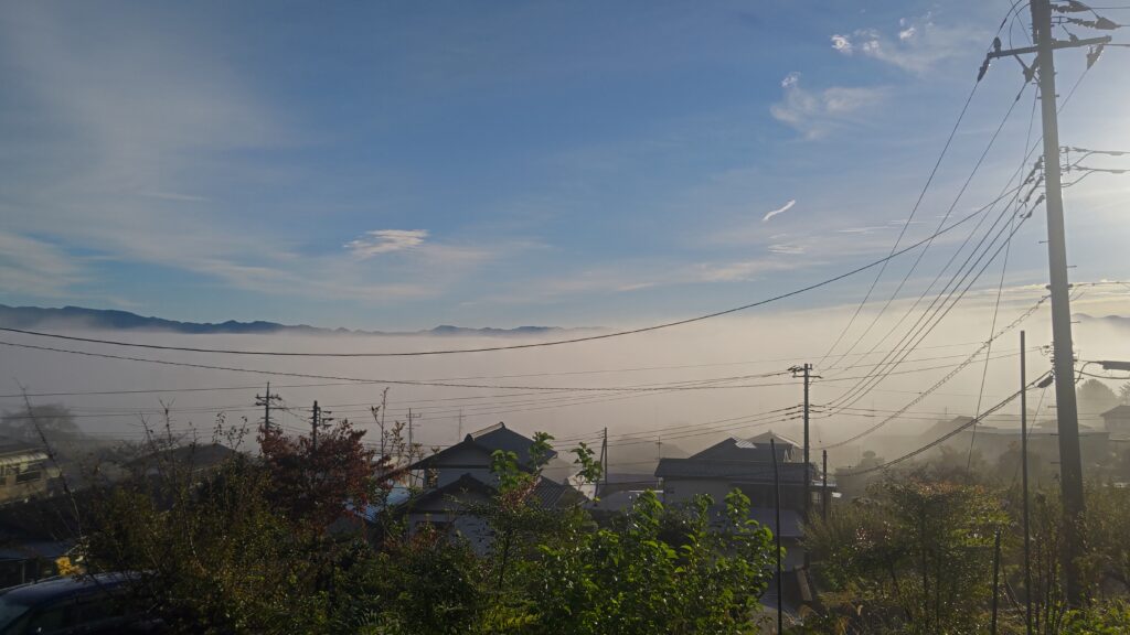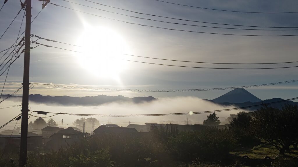 年に何回か甲府盆地一体が霧になることがあるので、もっと高い場所から見るとより分かりやすいだろう。