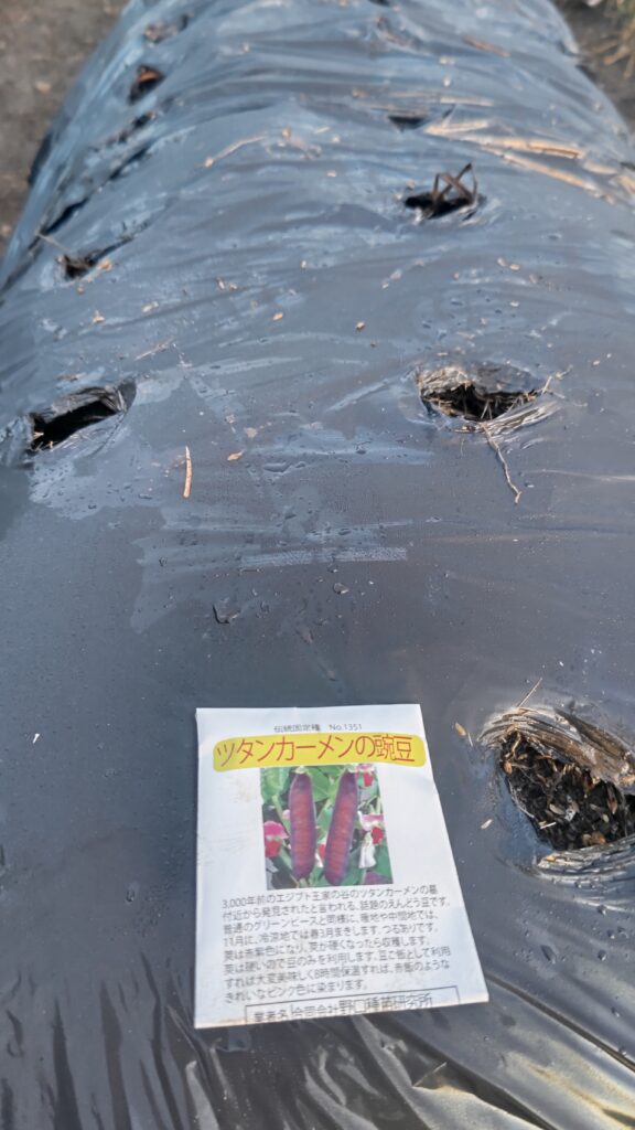 先日修復した畝に種を植えた。