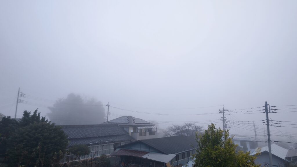 今日もすごい濃霧で、朝出かける用事があり車で韮崎の方へ行ったら、ずっと霧の中を走っていた。