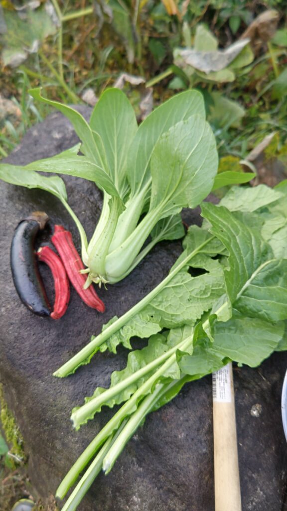 小松菜、チンゲン菜も収穫できる、これらは寒さに強いので、これからの冬用に種植えを増やしていこうと思う。
