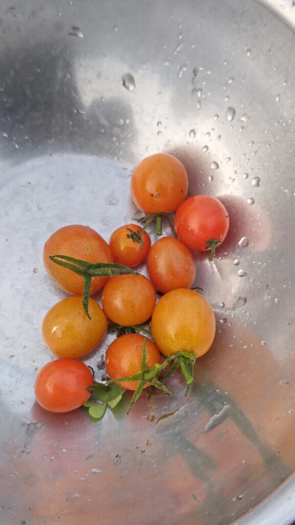 赤くなるトマトが何個か翌日にはあり、収穫するとだいたいこのぐらいの個数になる。