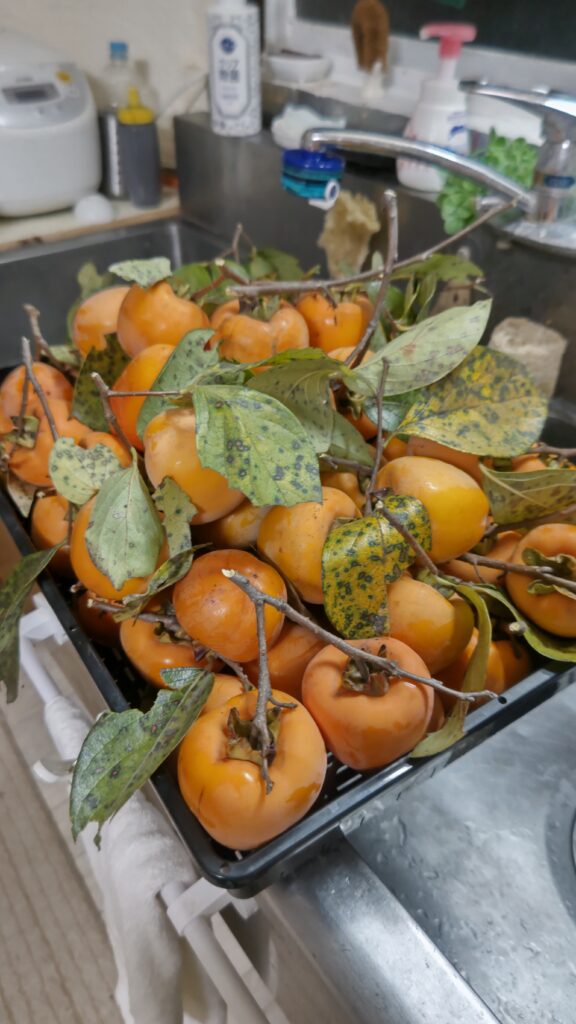 昨日、ご近所さんから電話で「甘柿があるけど食べないかい?」とお誘いがあった。