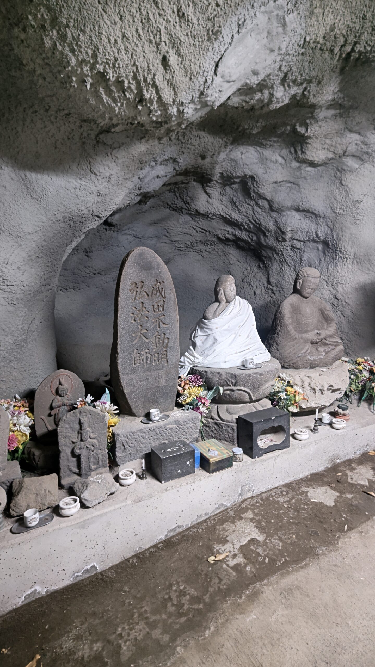 観音様の下には、弘法大師・空海が彫ったとされる石仏がある場所がある。