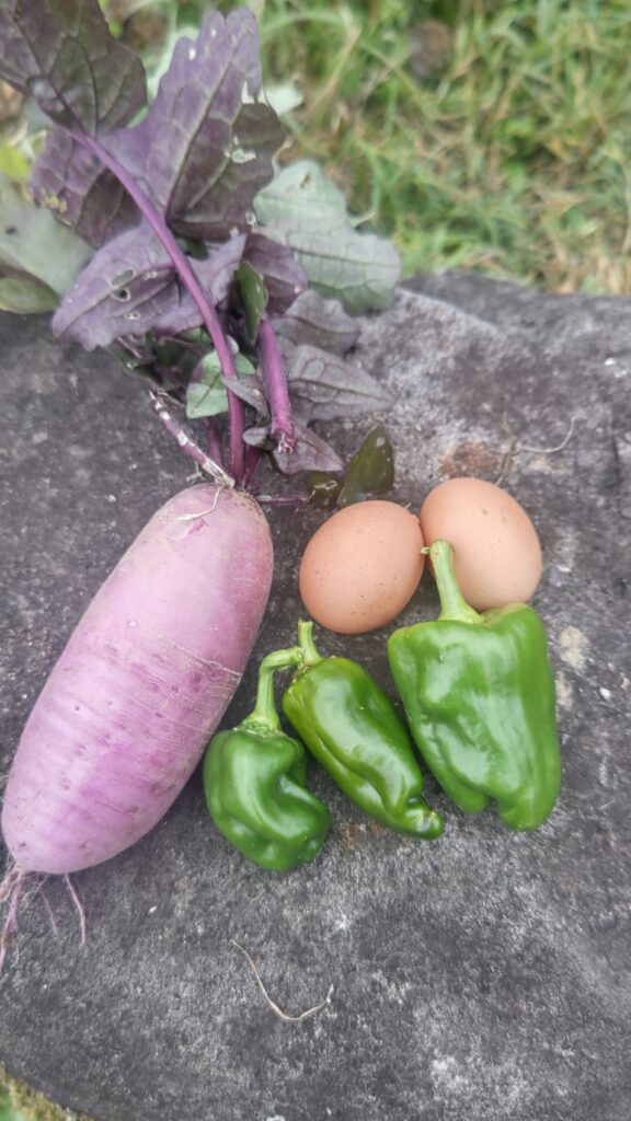 収穫した野菜は安心・安全の無農薬、化学肥料などを使用していません。