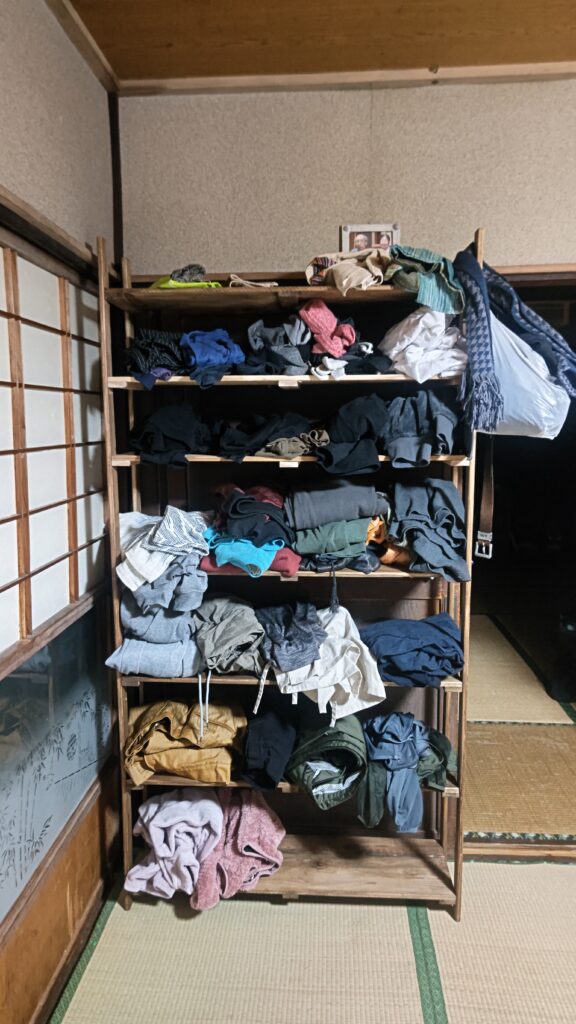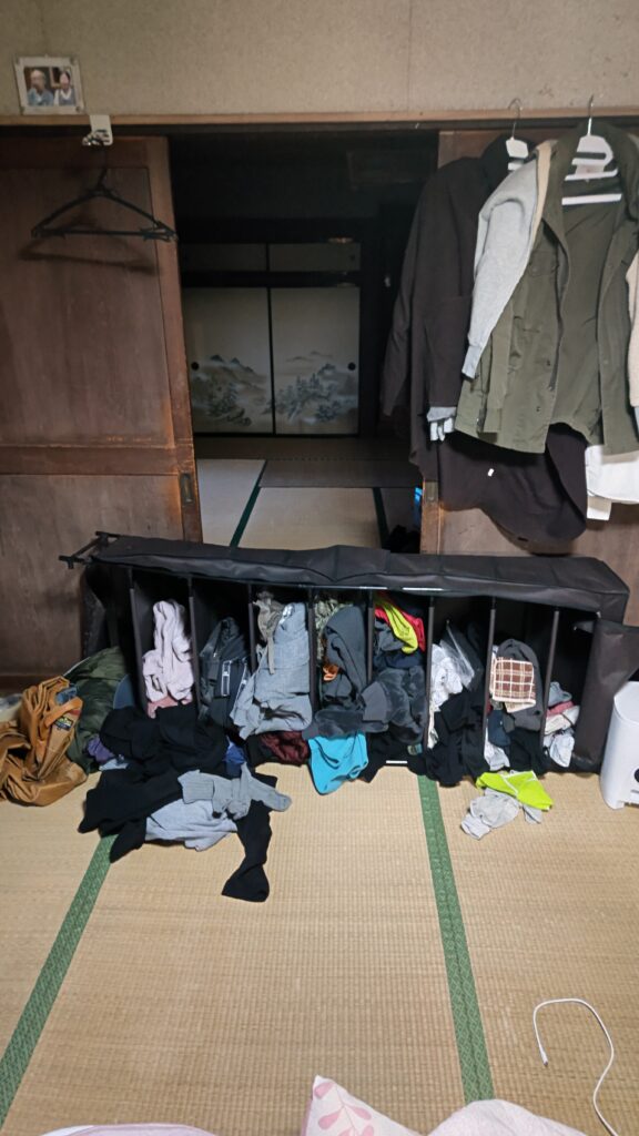 服の置き方が適当だけれど、まだやりたいのは箱を作ってその中に靴下など入れたいと思っているため、まだ完成ではない。