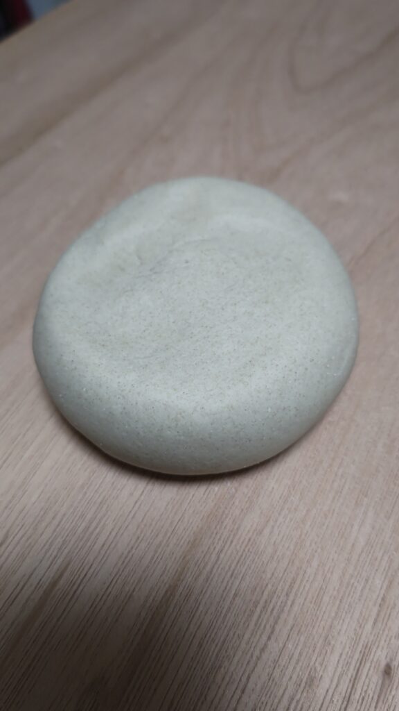 水回し、そして菊練りから平たい塊へと、この時点で1つぶ1つぶの蕎麦粉へ水がきちんと回り、非常にいい感じに思えた。