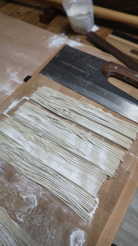 蕎麦打ちは移住してから1回打ったけれど、打ち粉を購入し忘れて残念な結果になった苦い経験があり、それ以降は打っていない。⁡
