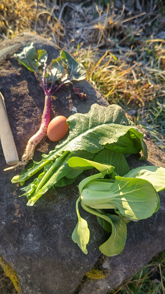 自家製の野菜が食べられるありがたさ、土地が有るのは素晴らしい、大地が恵みを与えてくれる感謝だね。