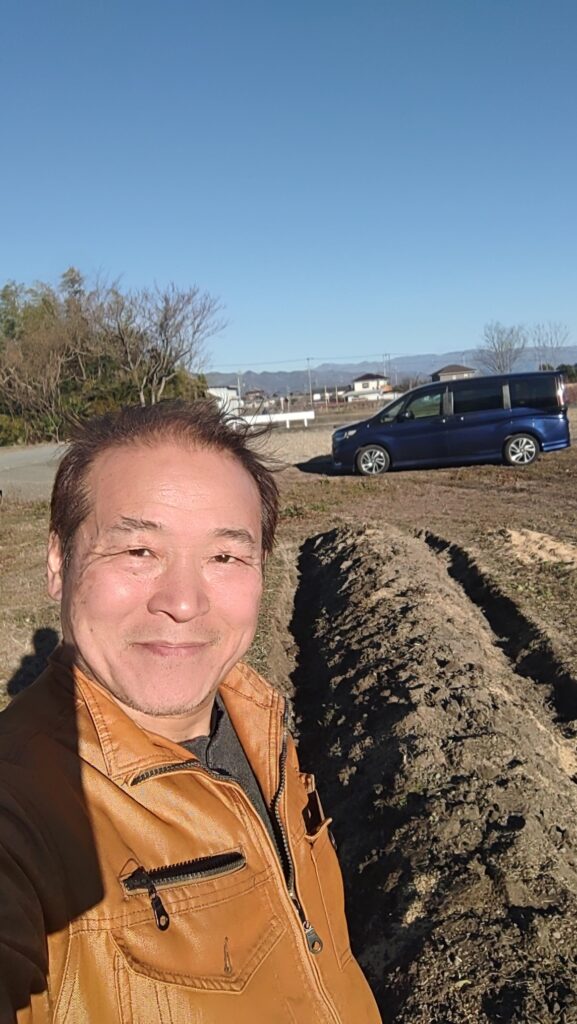 お昼休憩しながら作った畝、これが何本も増えていくのかと思うと、夢が膨らんでいく。