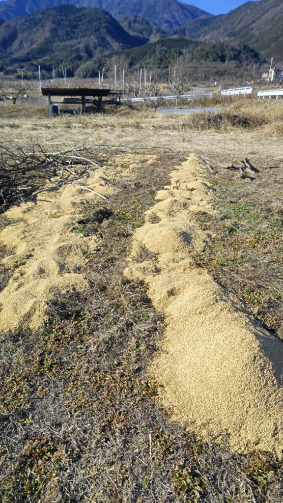 JAの精米所から籾殻を取ってきて、地面にまいた。
