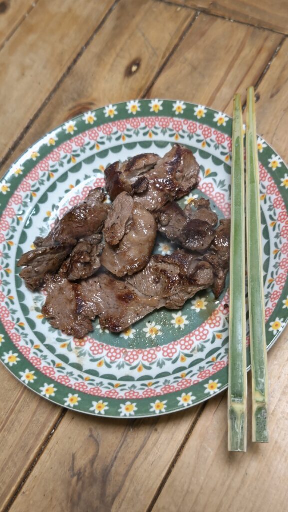 超新鮮な鹿肉、早速薄切りにして焼いて食べてみた。