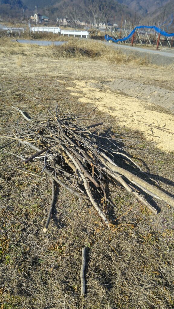 近くでは果実畑があり冬の間に剪定した枝など沢山ある。