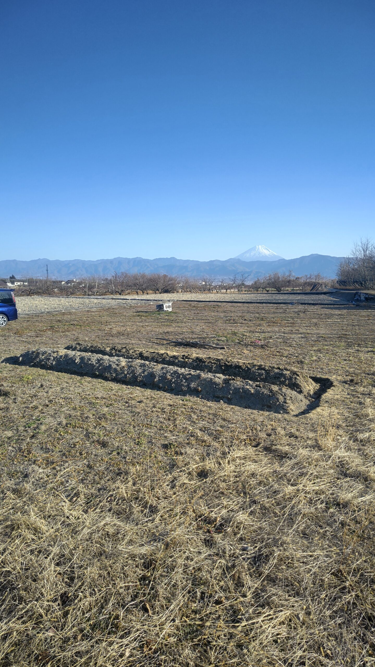 日頃の運動不足もあるので、土作業は運動不足の解消、健康づくり、広い場所と富士山を見ながら癒やされる作業でもある。