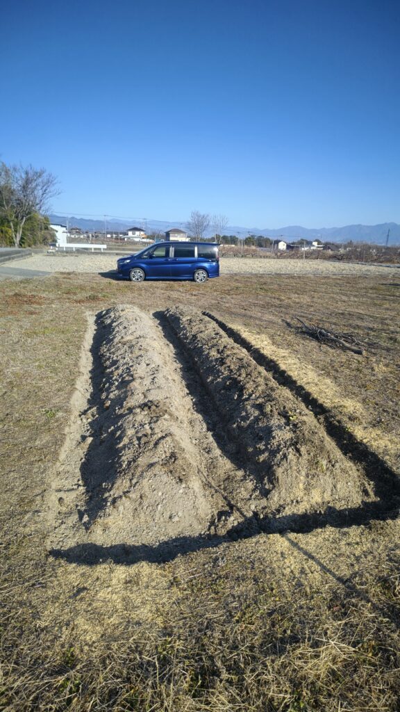 この1本の畝を作るのに4時間程度、休憩も含めてだけれど、かなりの体力を消耗する。