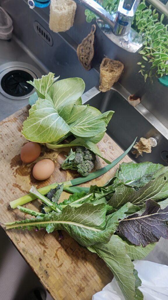 チンゲン菜も忘れた頃に大きくなってきているので、ありがたく収穫する。
