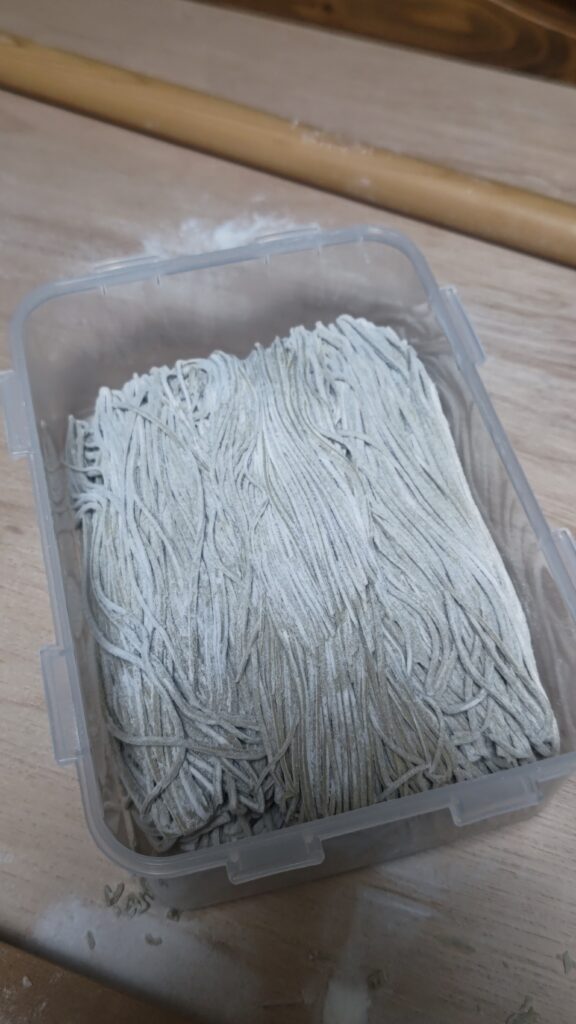 今回も700gの二八蕎麦を打ち、タッパーに入れておく。