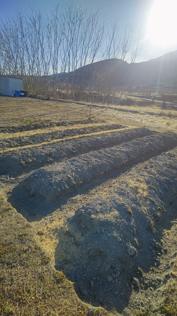 まだまだ1日の日が短いので、すぐに暗くなってくるので、作業は下を耕すだけにした。
