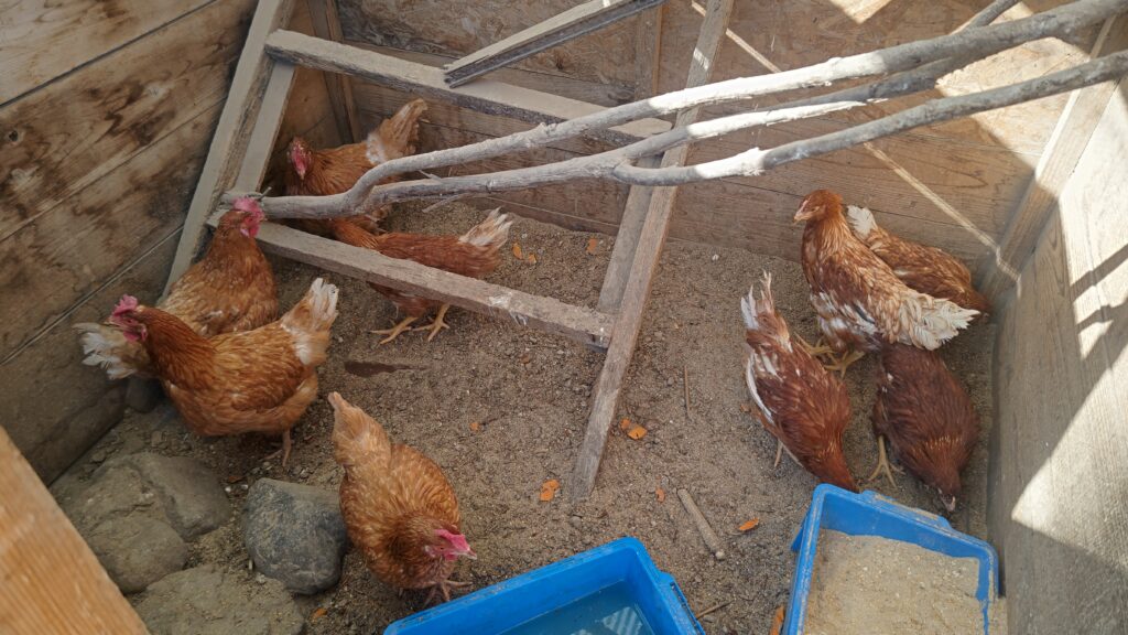 3年前は他の鶏がいなかったので、最初から伸び伸びと生活していたけれど、今度は古株がいるので伸び伸び出来ず、ストレスも溜まりやすいことだろう。
