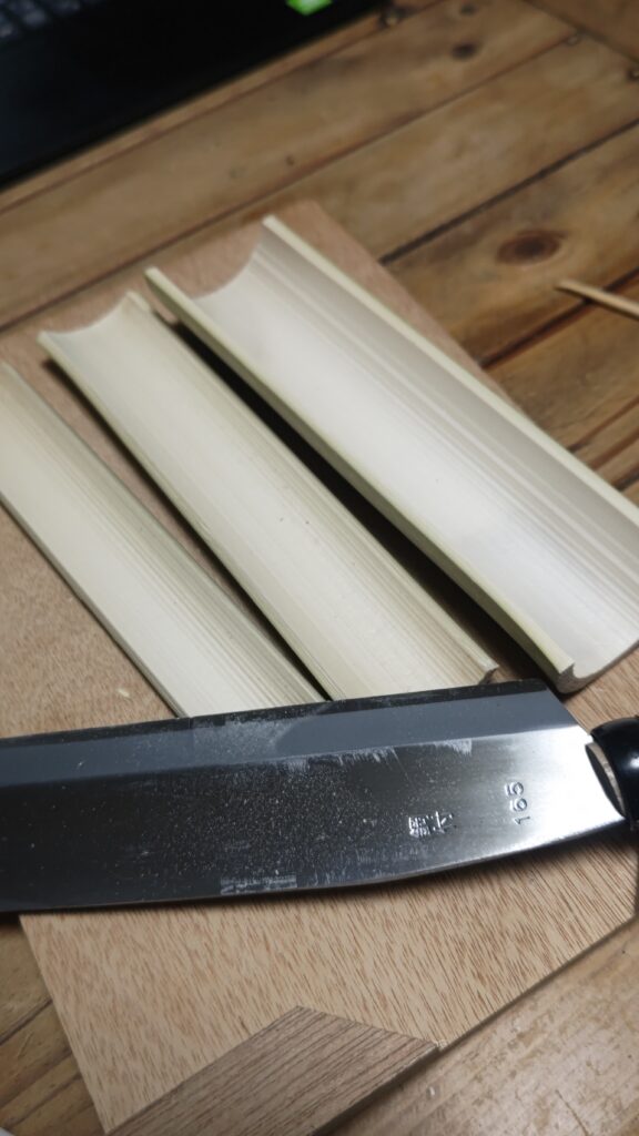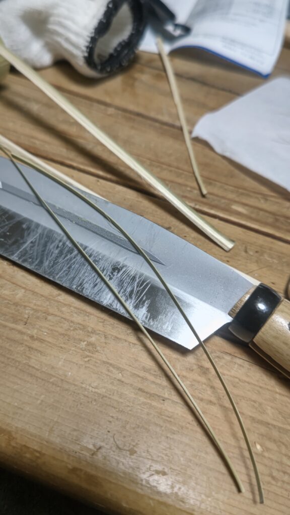 YouTubeで竹ひごの作り方を見てやってみたら、意外と上手く出来た感じだ。
