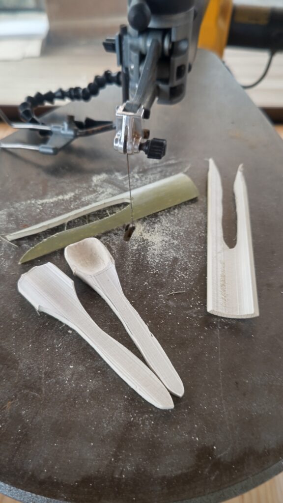 でも最初から形を糸鋸でカットしたほうが早いなと気づき、2本めはスプーンの形にカットした。