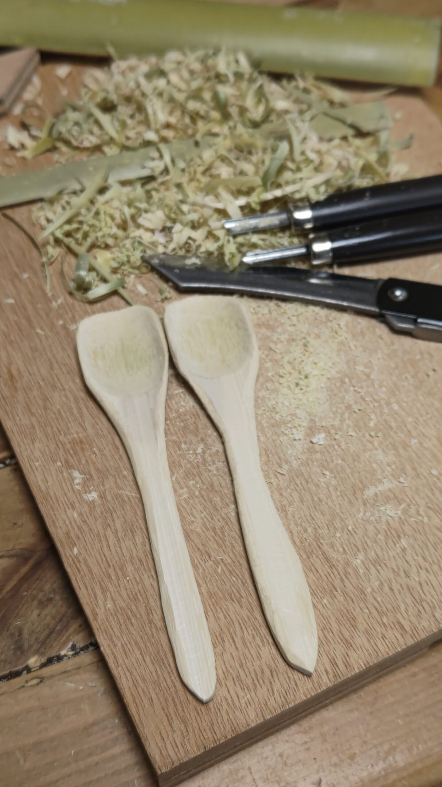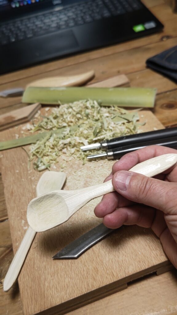 しょうがないから部屋に閉じこもって、竹でスプーンでも作ろうと思った。