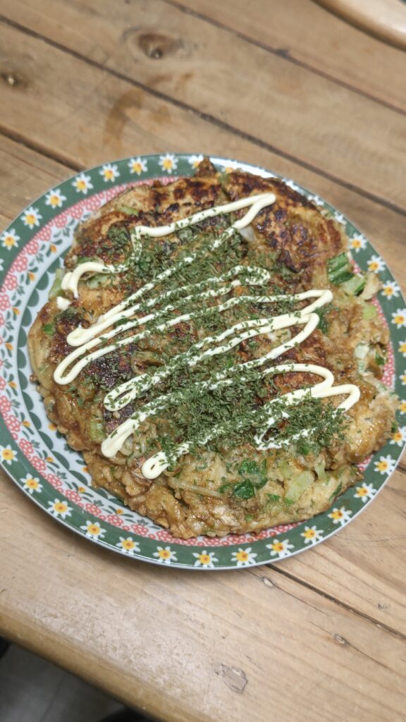 とりあえずはお腹が空いたので、お好み焼きを作って昼ご飯にして食べた。