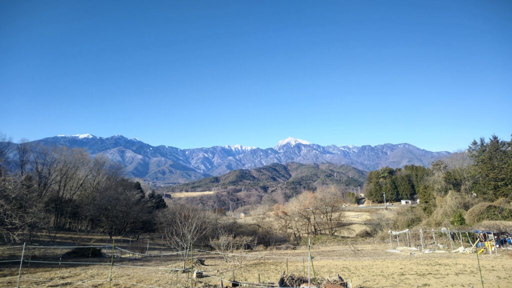 北杜市長坂町から眺めた南アルプス、中央に甲斐駒ヶ岳が見える。