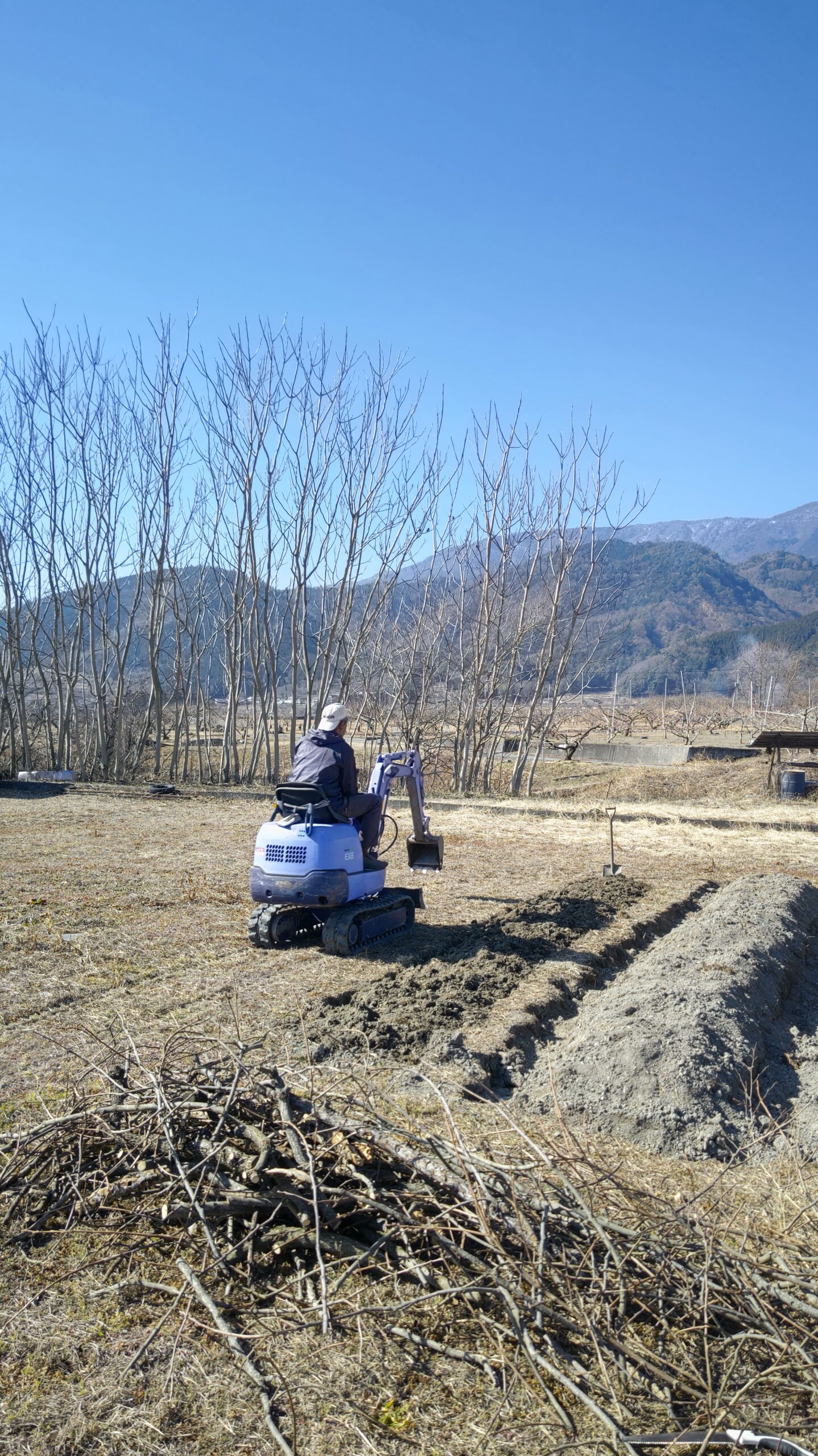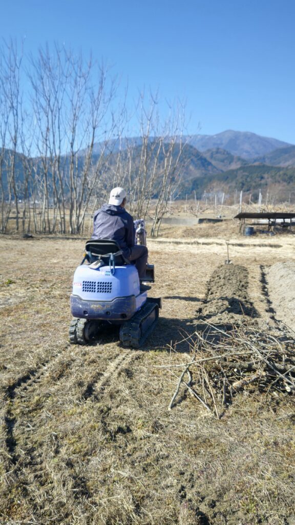 そんな簡単なやりとりを行い、納得したのか分からないけれど、ミニユンボを使用してぶどう畑の作業をしていた。