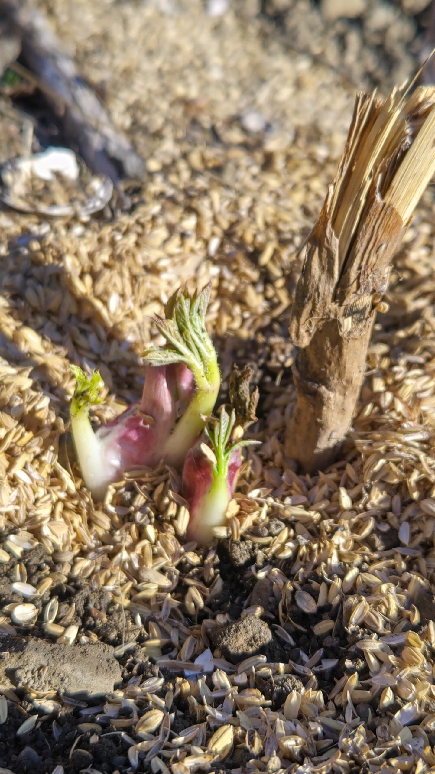 とりあえずは、周りの籾殻で覆い隠しておこうと思う。