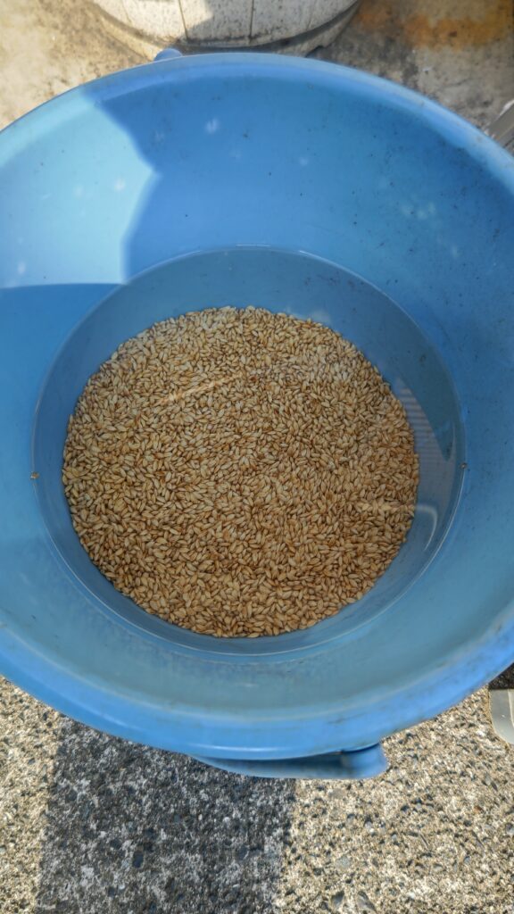 沈んだ重い種籾は、新鮮な水に入れておく。