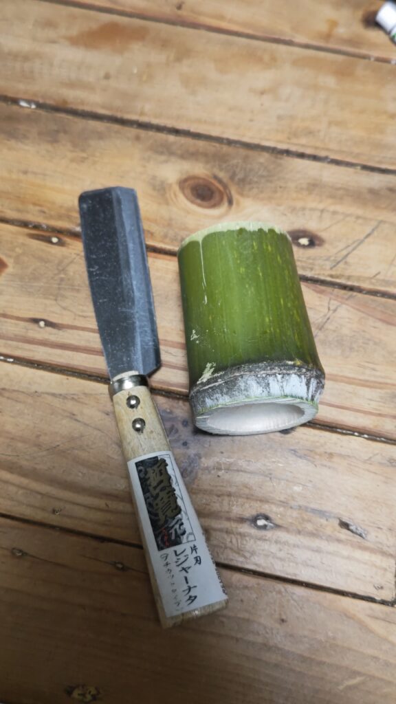 竹で物を作るようになってから、なんだか楽しくなって、箸を作り、箸置きを作り、コップ作りと、竹で物を黙々と作っていると癒やされる。