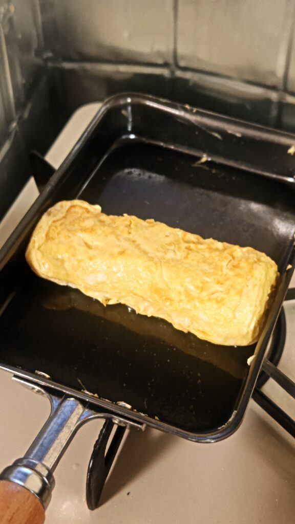 鉄の四角いフライパンで作ると、卵焼きが作りやすい。