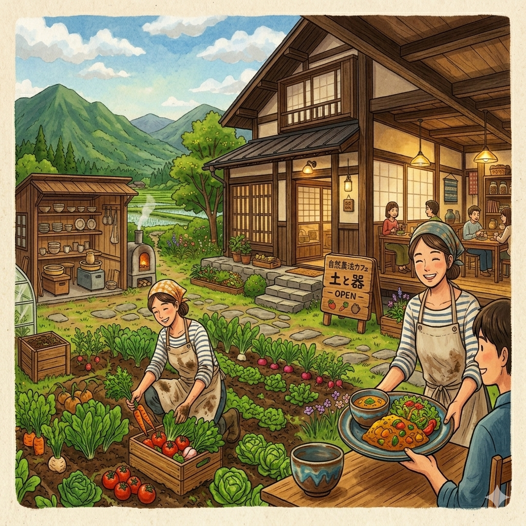 「いちから古民家|自然農法の大地の恵」の文言は、まさに文言通りで大地の恵みで感謝する意味がある。