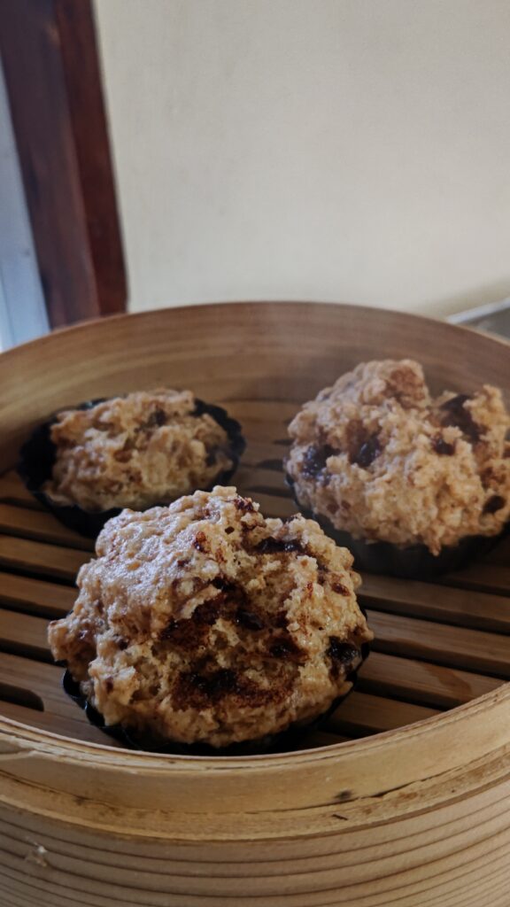 かなりフワッフワ感になった、チョコとどんぐり入りの蒸しパン