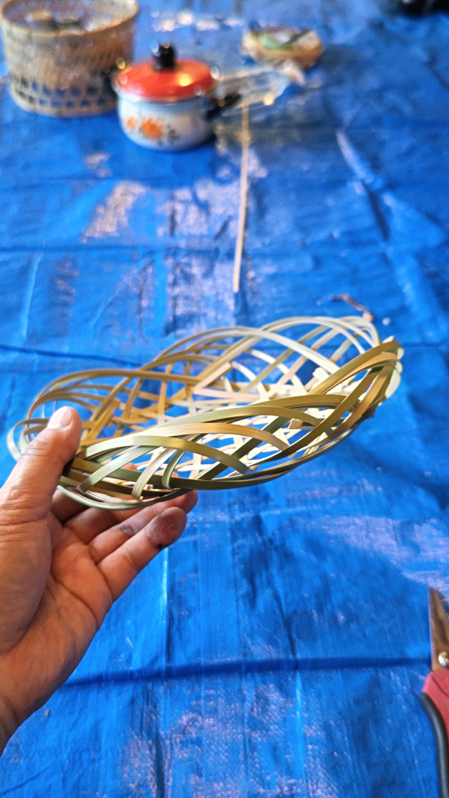 竹ひごを12本使用する、竹籠作りの教室に参加した。